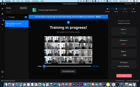 For this assignment, I had to train a StyleGAN model with my data using Runway. I looked for tutorials to do that but turns out there was a train option on runway all along. For the dataset, I chose nebulas, and for the setup I chose step 3800 which is basically a bunch of old pictures of men as shown on the preview.